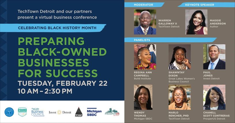 TechTown Detroit is the city's leading small business incubator. It's annual conference always results in a stronger Detroit small business engine that drives employment and empowerment. This year, and in honor of Black History Month, featuring a Maggie Anderson keynote, the focus is a stronger BLACK business engine and more BLACK community empowerment. This one day event is FREE, virtual...so if you care, you'll be there!
